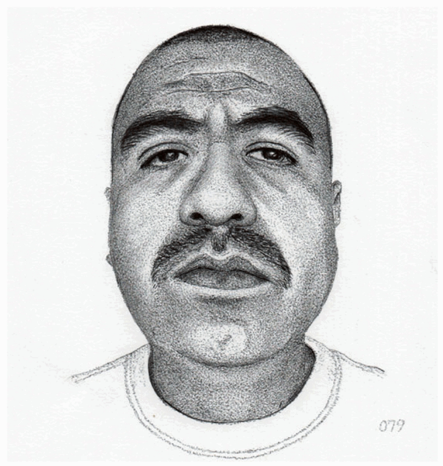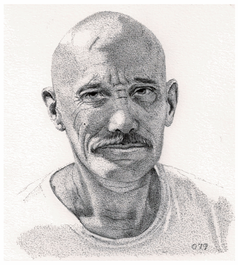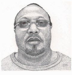 For the record: I not been able to draw any faces of female prisoners, simply because I have not been around any. Believe me, I would much rather draw women than these old hard-legs I'm around :) So if you know of a female prisoner who would like to become part of this project, please send me their up-close faces picture.